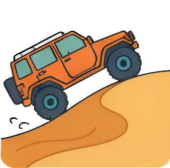 Going high with engine force to the edge of the dune and sliding down to the ground, in a safe manner.