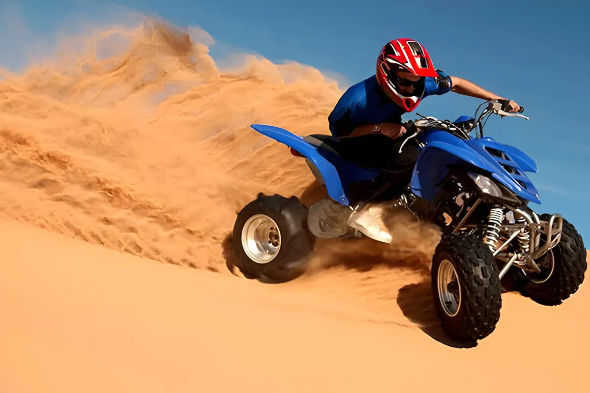 Experience the ultimate adventure in the golden deserts with our Ajman quad biking tours. Feel the excitement as you ride over sand dunes, navigate off-road trails, and take in the vast desert landscapes. Perfect for beginners and experienced riders alike, our tours provide a safe and thrilling way to explore the desert. Combine your ride with camel safaris or dune bashing to create an unforgettable day filled with adventure, stunning views, and unique desert experiences.