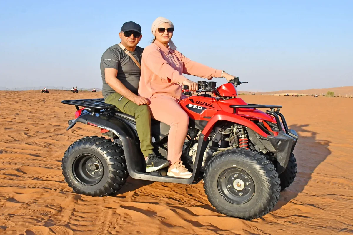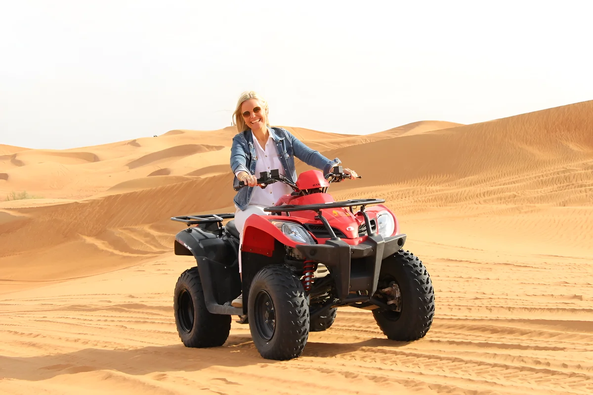 Yes, you can add more desert adventures to your quad biking tour for an extra cost. Popular options include camel rides, sandboarding, dune bashing in 4×4 jeeps, and dune buggy rides in Ajman. These can be combined with your quad bike experience to make the trip even more exciting. Let us know in advance or book on-site, and we’ll arrange the extras for you